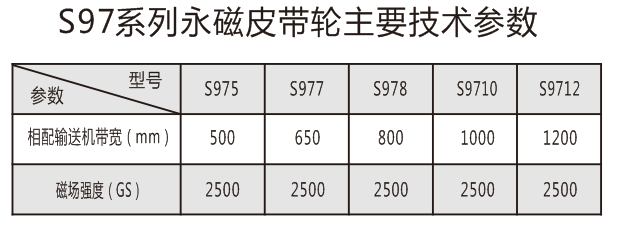 注:S95、S97、S99系列永磁分離設備,采用了高強磁性材料,具有磁性強、磁分離效果好、運轉平穩、